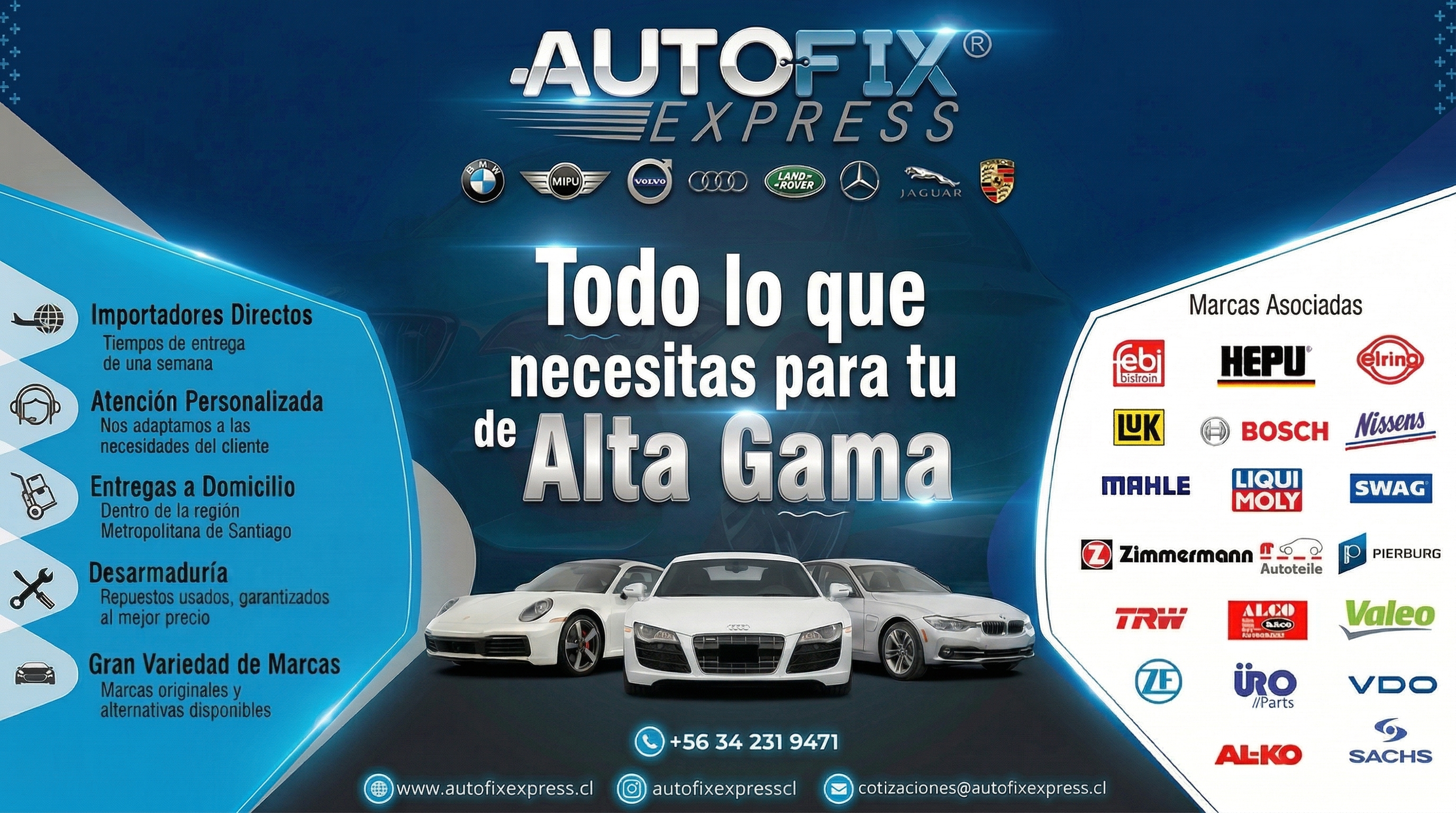 Tu auto de alta gama merece lo mejor, y nosotros lo tenemos. Somos distribuidores oficiales de las principales marcas directamente desde Europa 🇪🇺. Desde repuestos hasta accesorios, te brindamos la excelencia que tu vehículo merece. No comprometas la calidad. El lujo y la perfección europea, ahora en cada detalle de tu auto. Descubre lo que realmente significa un servicio de primera clase. Tu pasión merece la autenticidad de Europa.